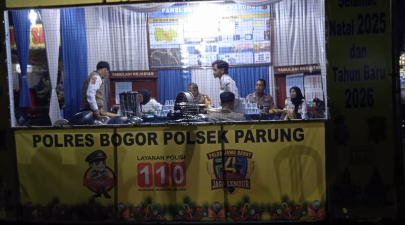 Dalam rangka menciptakan situasi yang aman dan kondusif pada malam pergantian Tahun Baru 2026, Polsek Parung bersama Koramil Parung menggelar apel pengamanan di Pos Pengamanan Parung, Kabupaten Bogor, Selasa malam (31/12/2025).